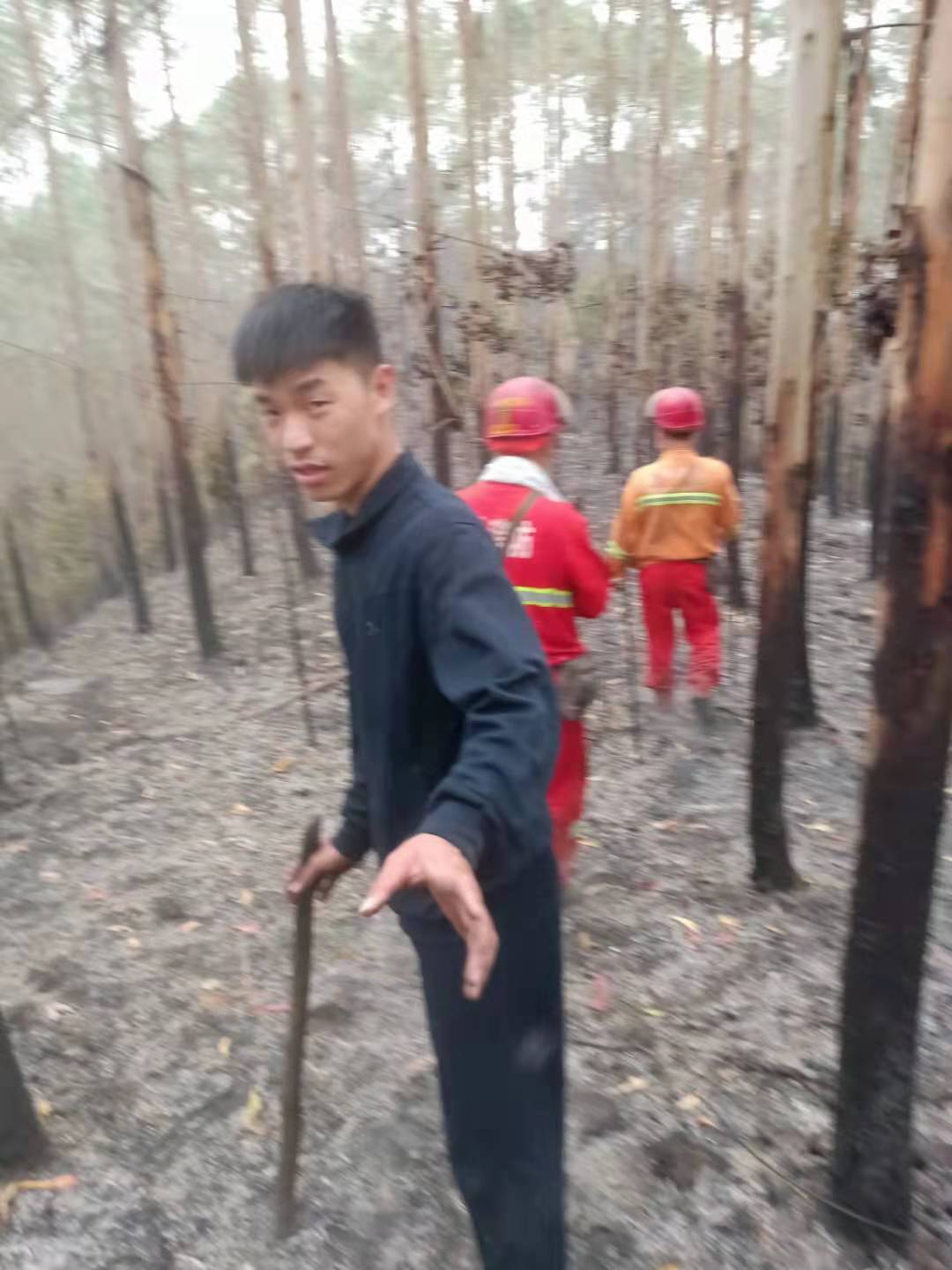 当问及喻传斌同学时,他说:“一声军人,一生军魂。由于在军旅生涯中执行过扑灭山火,保卫群众生命财产的任务。那天中午看到远处浓烟滚滚,空中漂浮着大量飞灰,空气中夹杂着烧焦的气味。我的第一反应是,林子起火了。在部队历练两年的我知道,救火,刻不容缓。同父母交代后,联系上了同为退役军人伙伴,一同上山。进山后,周围一片狼藉,入眼处都是燃烧后的灰烬,能听到噼啪噼啪的爆燃声,我和伙伴跟随着队伍寻着声音往着火点进发,路上遇到明火我们用棍子扑灭,用沙土覆盖,避免二次起火。我是军人,入伍时班长说过军人没有不行的,只有不会干的。来到了起火纵深处,熊熊烈火炙烤着我,火场温度极高,稍不注意就会被火舌触碰到皮肤。火情不允许有丝毫松懈,我立即加入了开辟隔离带的任务。在火的炙烤下虽然大家都很难受,每个人都大汗淋漓,但大家没有片刻停顿。那一刻,我觉得消防员冲在一线真的很辛苦很伟大。傍晚时候,下起了小雨,回到家的我真的好累,但我很骄傲,我感觉虽然退伍但是部队教会我的依然还在我的人生中延续着。”