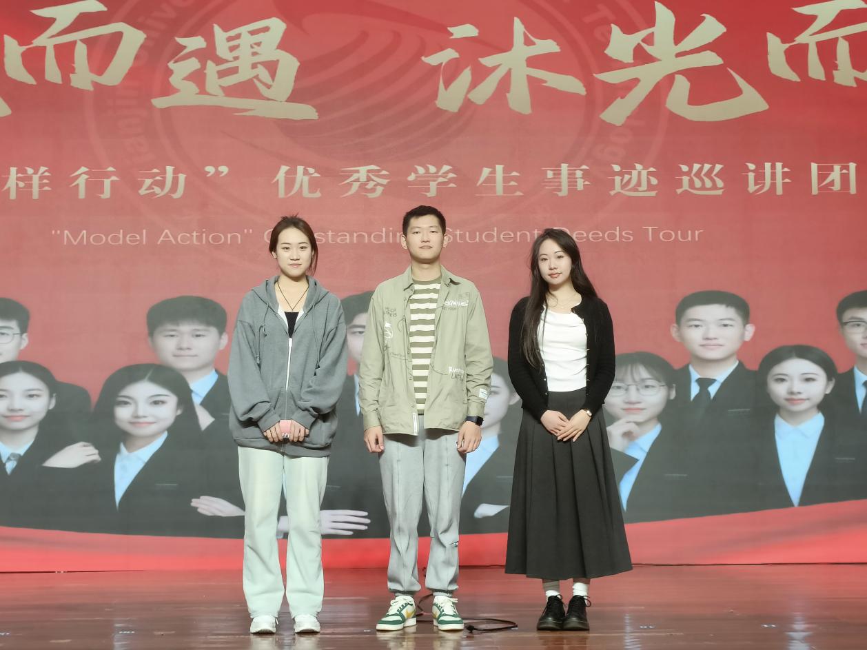 本次活动邀请了天津科技大学“榜样行动”巡讲团成员金柯男、杜奕霏和郝希颖三位同学为我院在籍本科生开展宣讲。