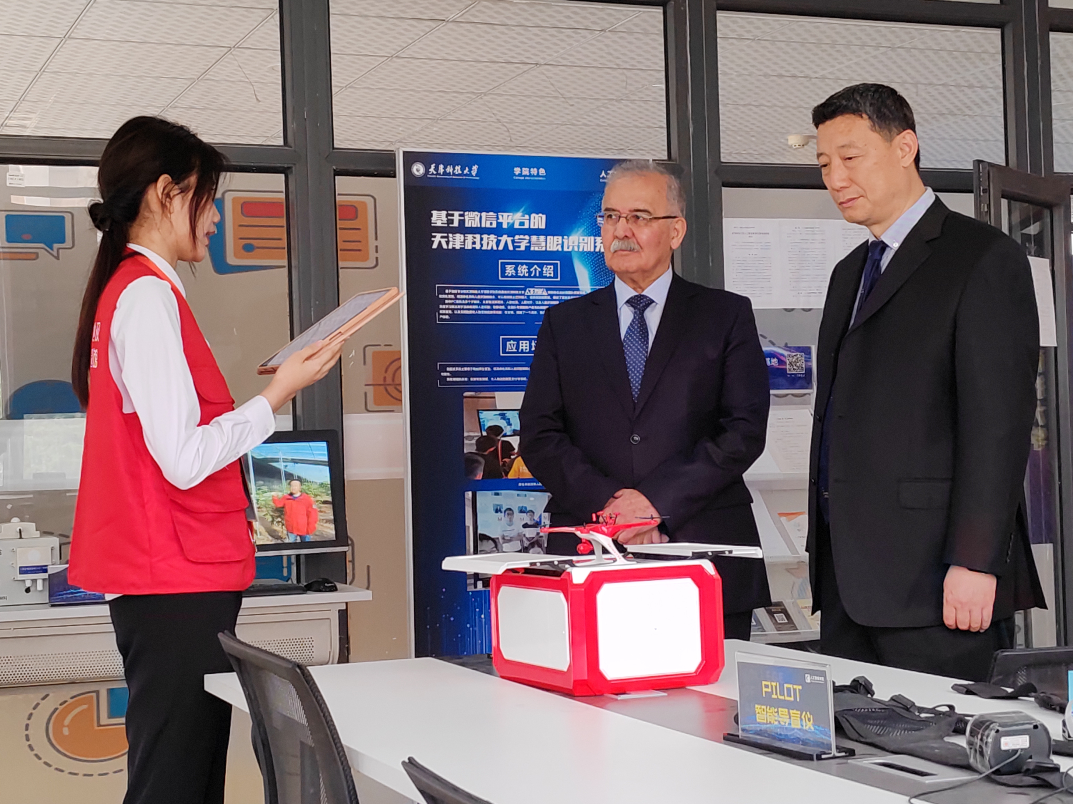 乌兹别克斯坦撒马尔罕国际科技大学校长走访参观天津科技大学人工智能学院教育科普基地
